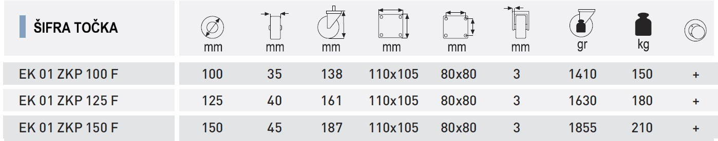 | Šifra točka | EK 01 ZKP 100 F, EK 01 ZKP 125 F, EK 01 ZKP 150 F |