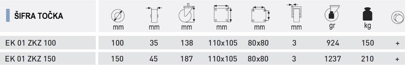 | Šifra točka | EK 01 ZKZ 100, EK 01 ZKZ 150 |