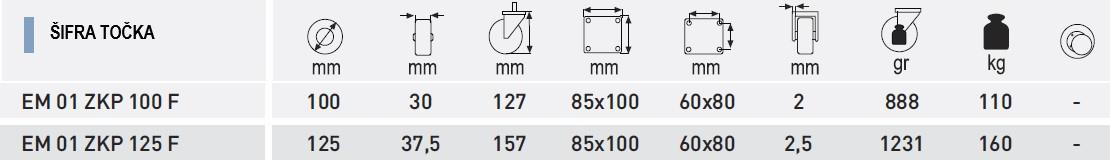 | Šifra točka | EM 01 ZKP 100 F, EM 01 ZKP 125 F |