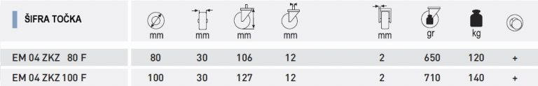 | Šifra točka | EM 04 ZKZ 80 F, EM 04 ZKZ 100 F |