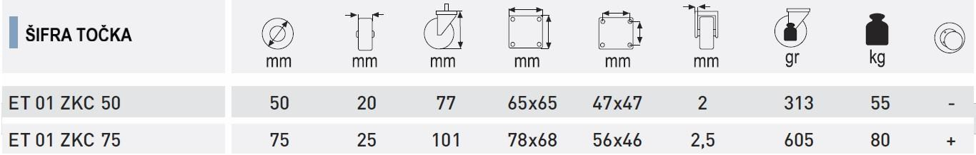 | Šifra točka | ET 01 ZKC 50, ET 01 ZKC 75 |