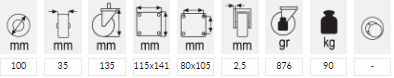 Točak stabilni od sive gume, ne ostavlja trag. Viljuška napravljena od presovanog čelika, centar točka napravljen od polipropilena, gazeći deo od sive gume 85 šora, bez ležajeva.