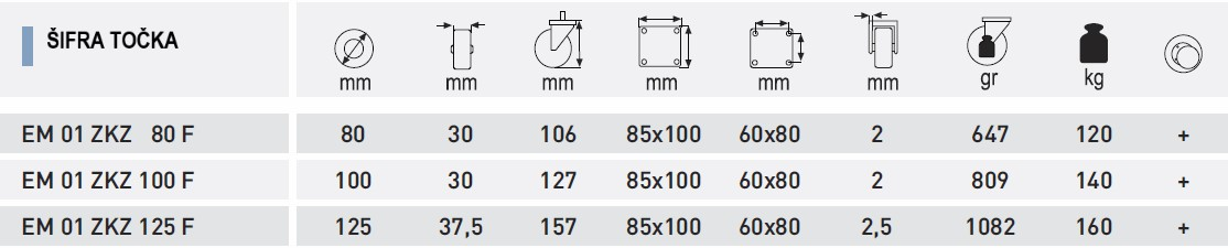| Šifra točka | EM 01 ZKZ 80, EM 01 ZKZ 100, EM 01 ZKZ 125 |